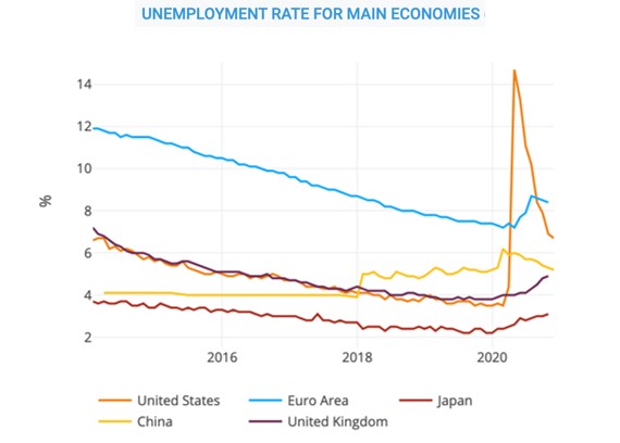 Indeed, whereas the growth momentum looks strong in China, the pandemic should continue to keep a lid on economic activity in the US and in Europe in 2021 after the disaster of 2020. It appears clearly that the size of the impact of the pandemic on health systems in 2020 is negatively correlated to the speed of the recovery in 2021. Finally, the Covid crisis will leave most countries with massive indebtedness and high unemployment rate at least until 2022.