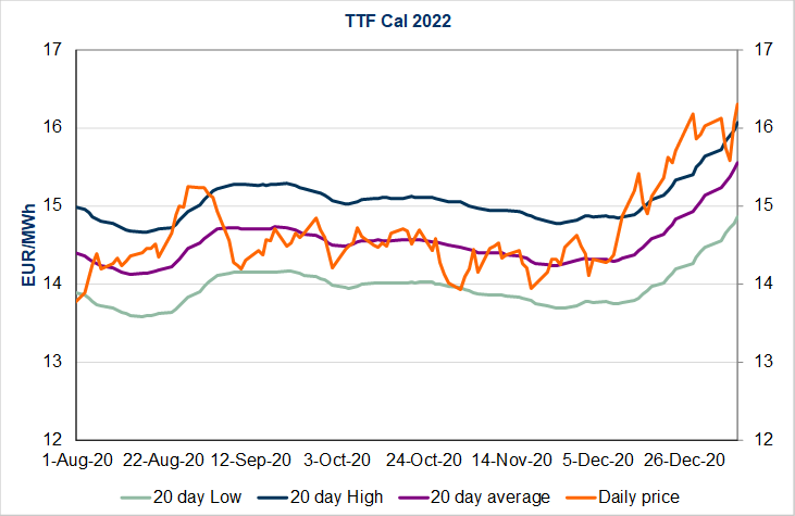 European gas prices extended gains on Friday, both on the spot and the curve, still supported by freezing temperatures in Europe and in Asia and tight LNG supply. In Asia, spot JKM prices rose to €59.966/MWh on Friday, +4.14% day-on-day, strongly helped by exceptional spot baseload power prices: €1184/MWh on Friday on the Japan Electric Power Exchange (compared to €722/MWh on Thursday).